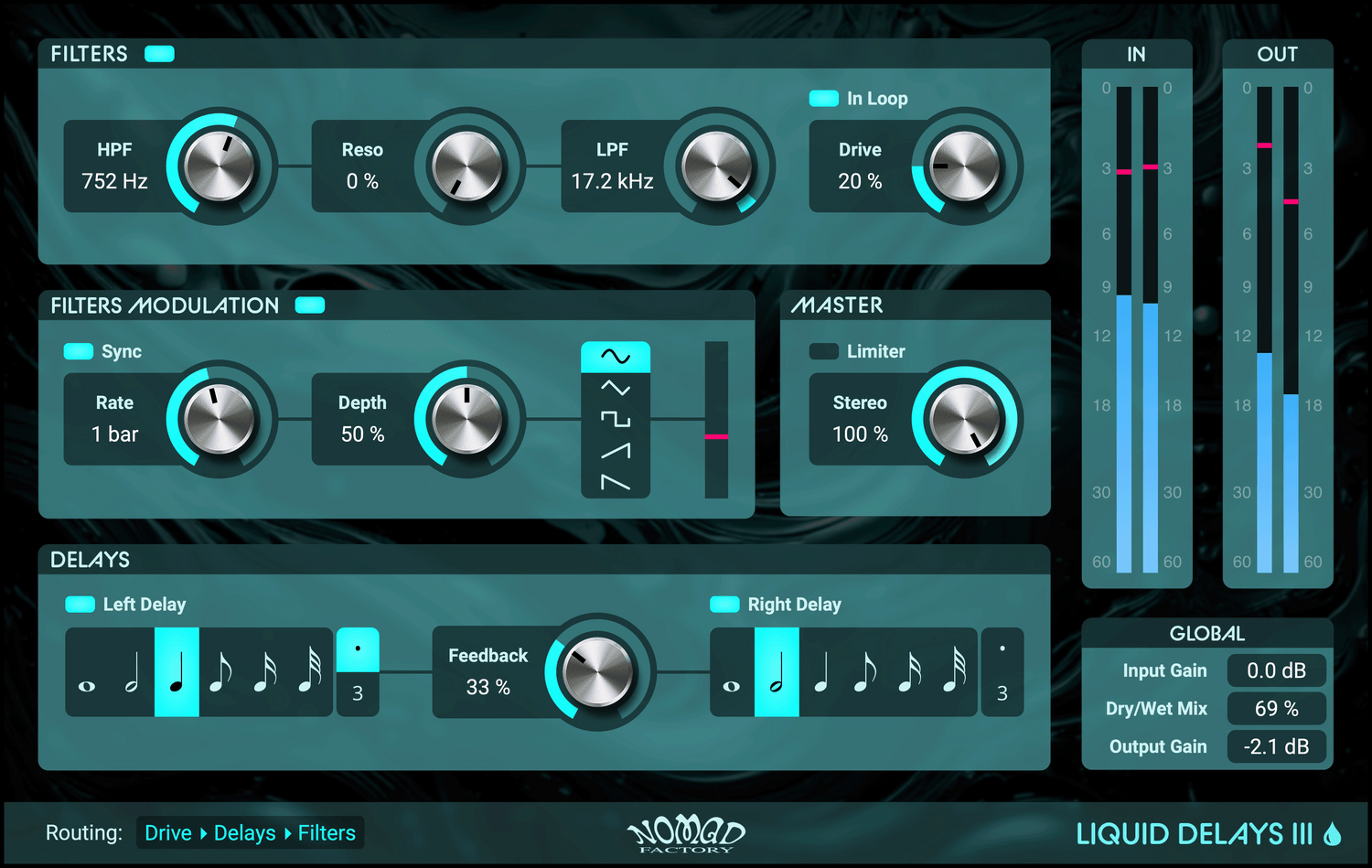 Liquid Delays III återskapar de rika ekona och rytmiska upprepningarna som definierade otaliga klassiska inspelningar. Designad för att efterlikna värmen från vintage delay-enheter, ger den en rik, analog-inspirerad atmosfär till dina spår med enkel kontroll.
