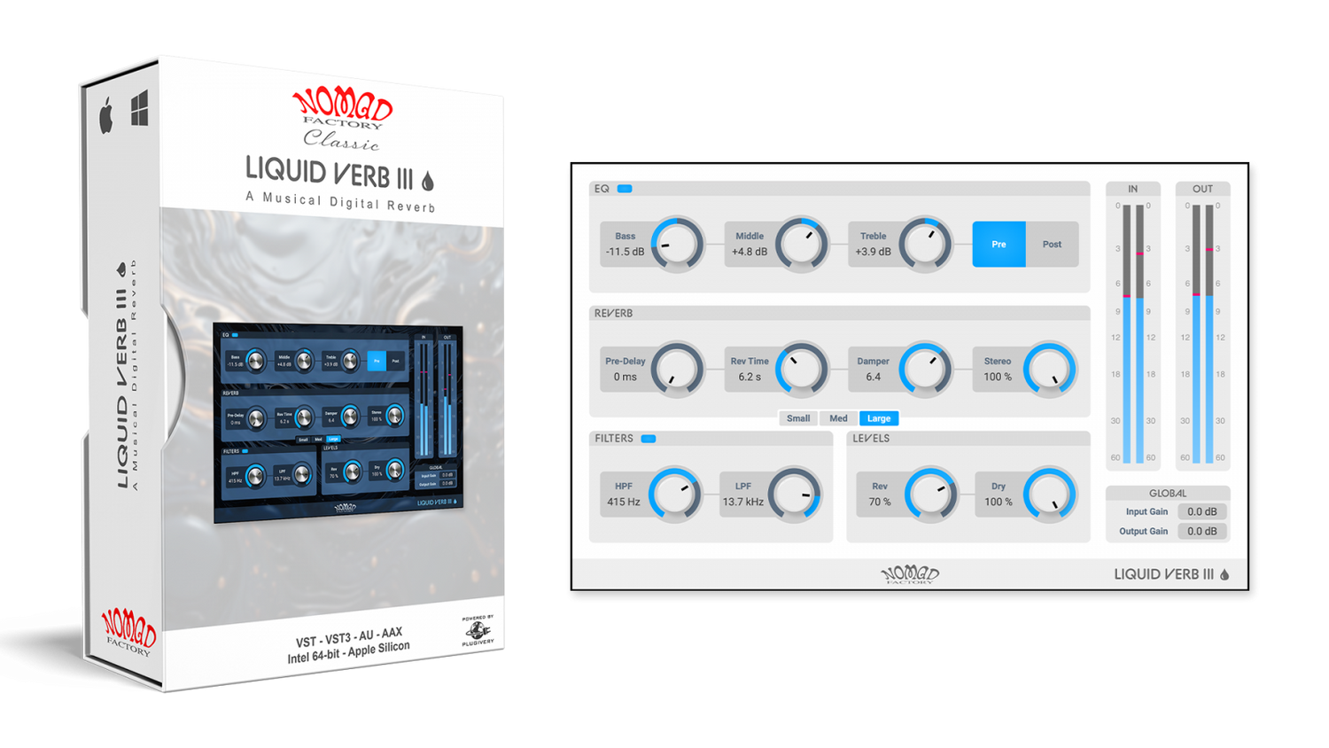 Wet/Dry-mixen och stereobreddparametrarna ger ytterligare kontroll över placering och djup. Med sina justerbara Dark och Light teman och optimerad prestanda, bygger Liquid Verb II bro mellan gammaldags atmosfär och moderna produktionsstandarder.
