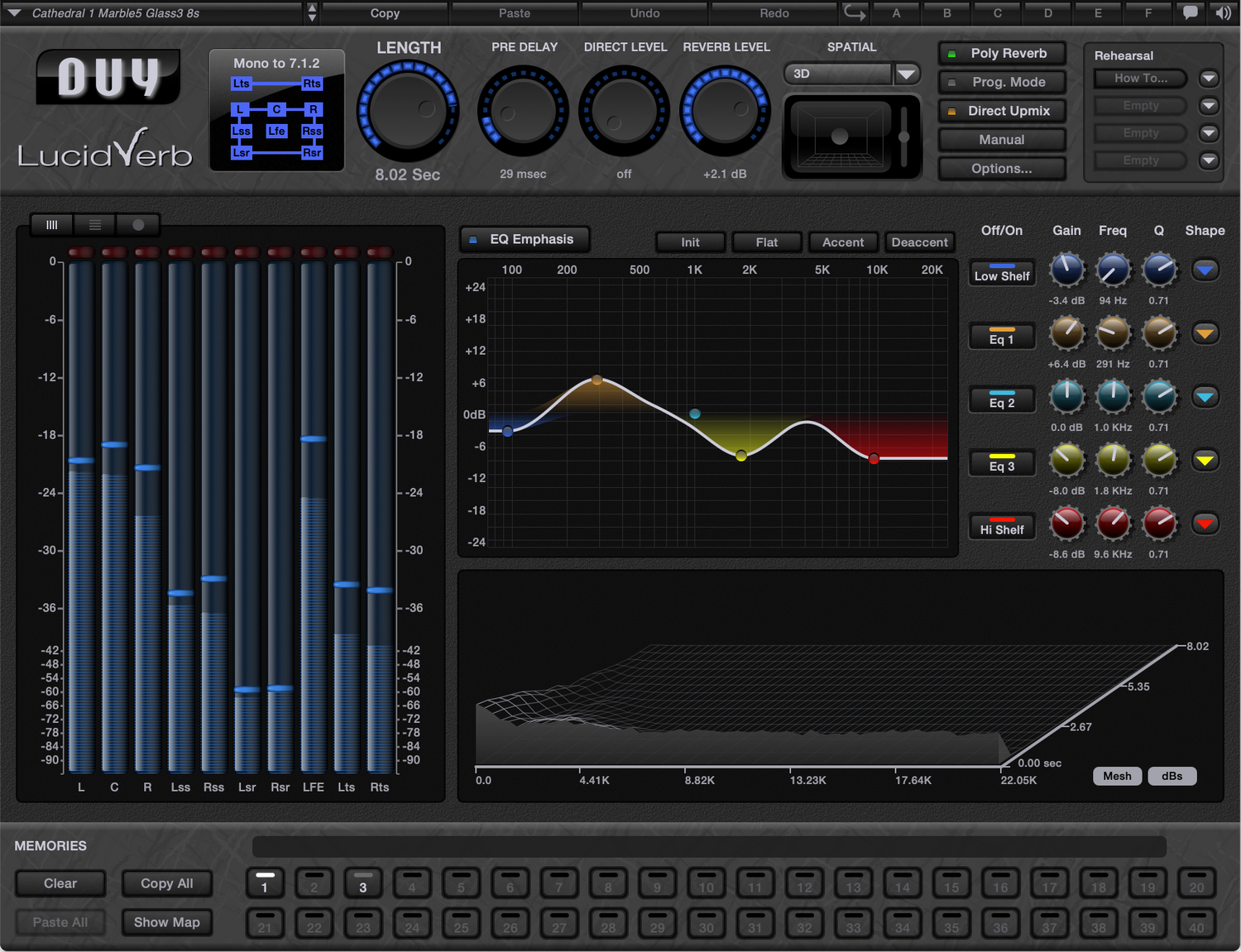 LucidVerb är en hybrid konvolutionsreverb med en egenutvecklad sonic "DNA" modelleringsmotor som kan rendera ett obegränsat antal helt dekorelaterade impulssvar med blixtsnabb hastighet.