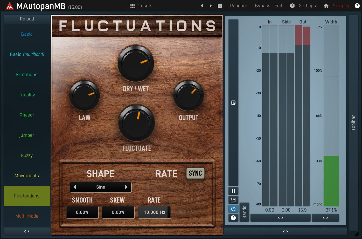 MAutopanMB, den mest kraftfulla automatiska panoreringen i världen, är lösningen när du behöver göra ljudmaterialet mer rumsligt och mindre statiskt. Det är ett oumbärligt verktyg för keyboards, gitarrer och många andra mono-instrument.