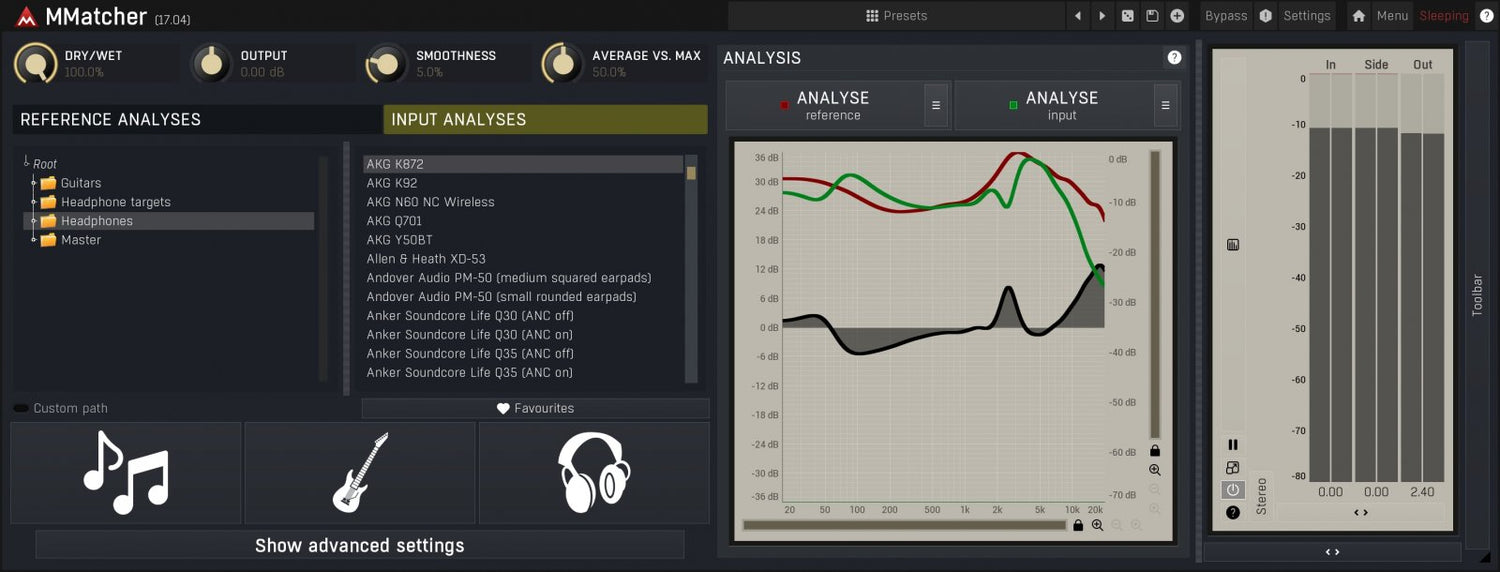 MMatcher är en revolutionerande plugin som är utformad för att effektivisera din ljudproduktionsarbetsflöde genom att erbjuda precis spektrum, ljudstyrka och stereo fältmatchning. Den kan göra så många saker... MMatcher är oumbärlig för mastering för att få rätt ljud. MMatcher låter dig justera dina hörlurar och monitorer så att du kan använda dem korrekt för mixning och mastering. Du kan använda MMatcher för att experimentera med gitarr/bas toner och vem vet vad mer!