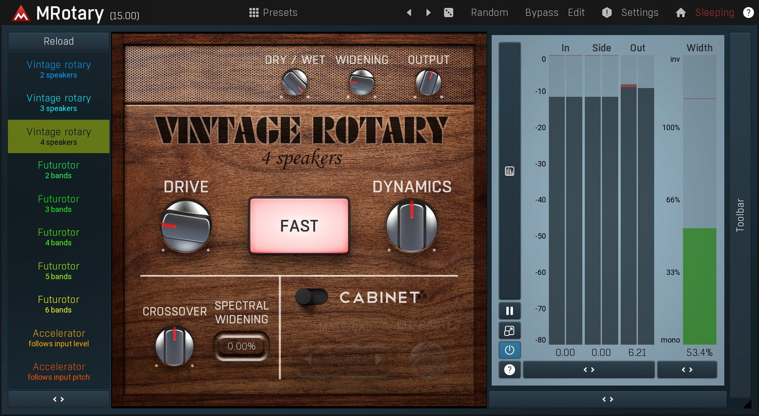 MRotary är den ultimata rotary-simulatorn, som kan leverera inte bara det fantastiska vintage-ljudet utan också futuristiskt algoritmiskt ljud med upp till 6 högtalare samtidigt.