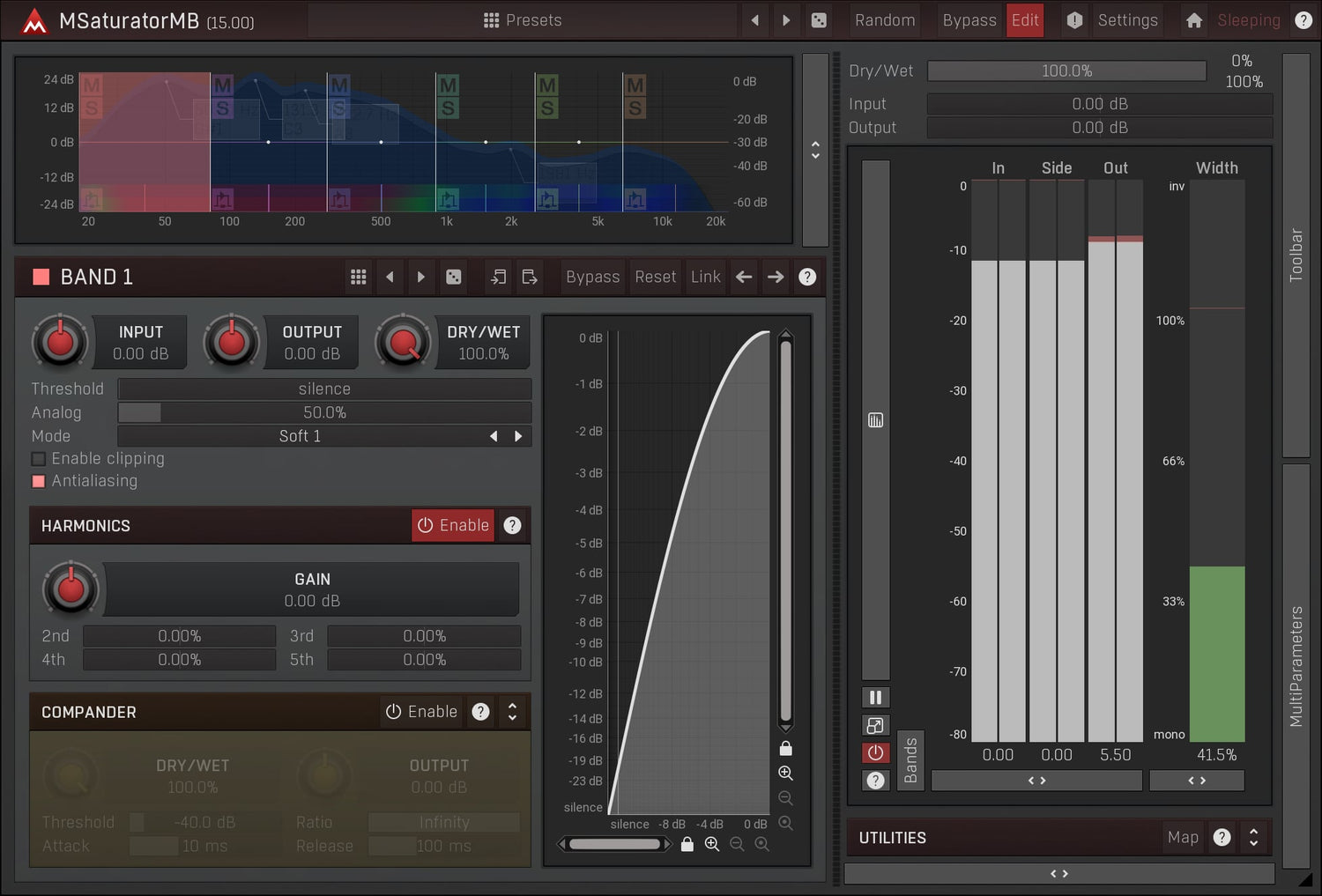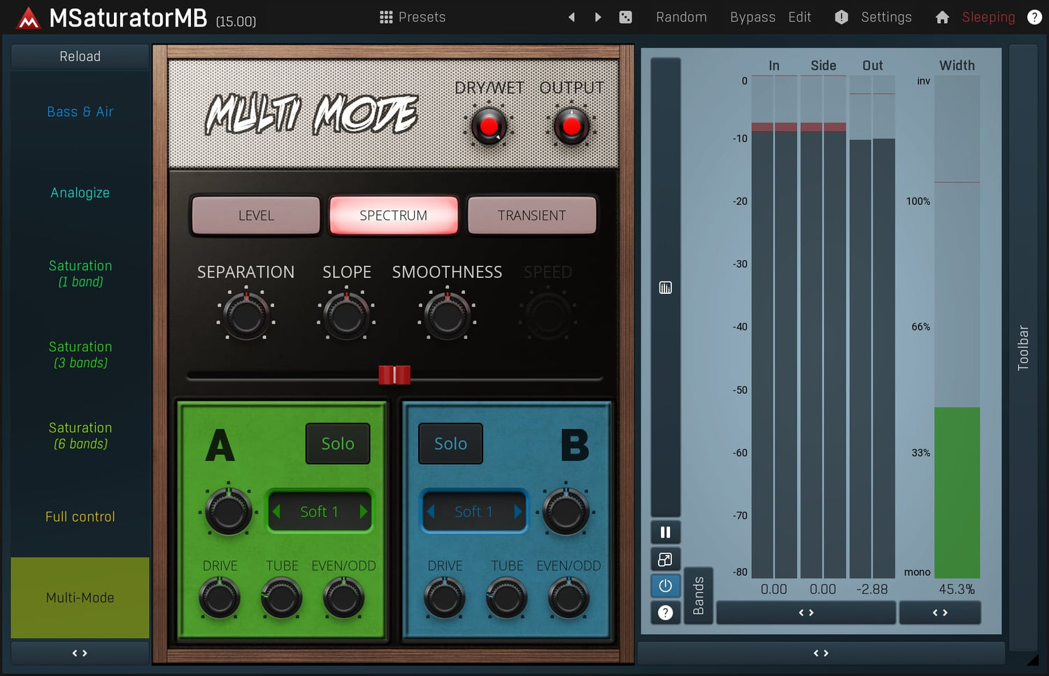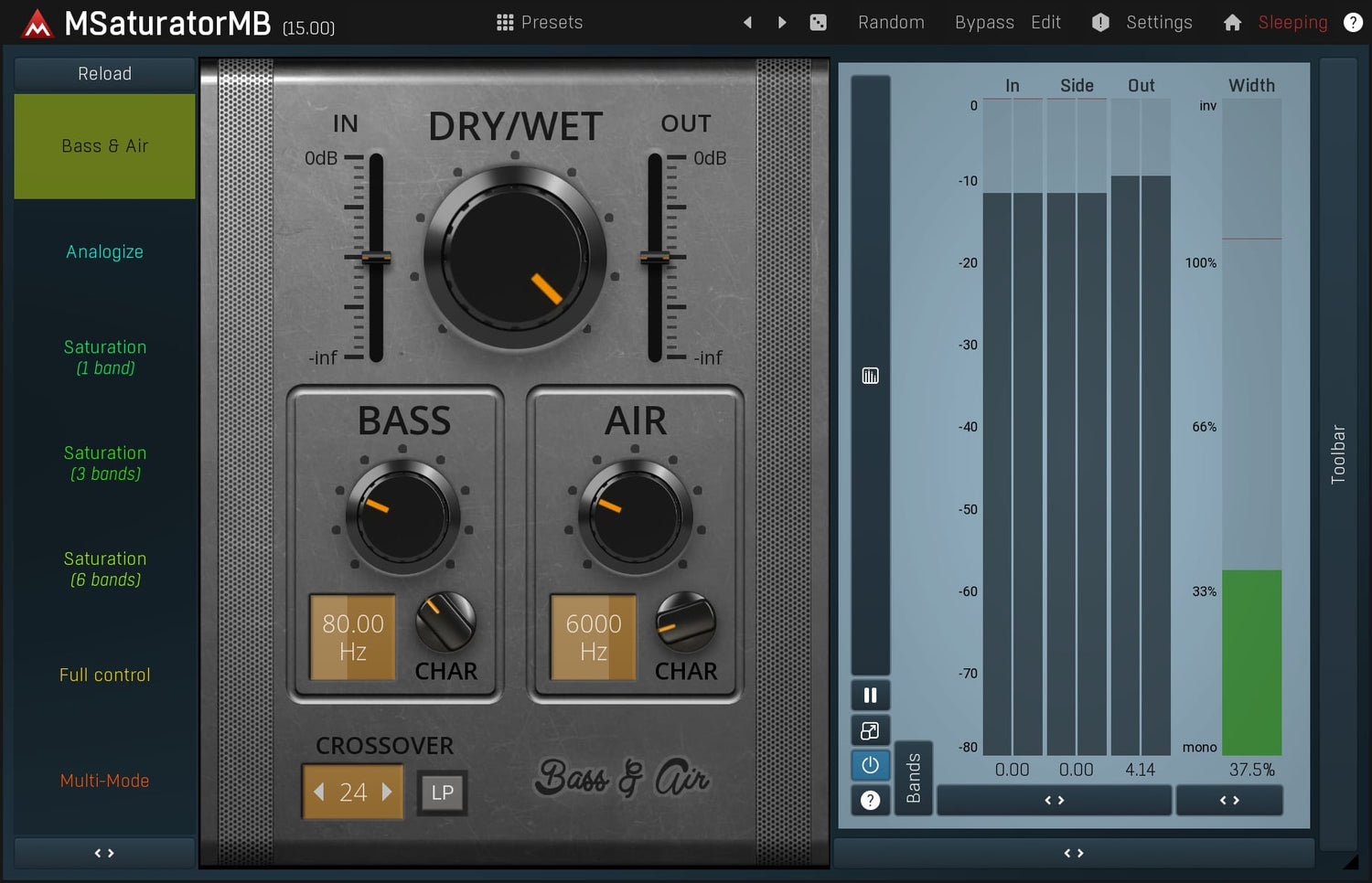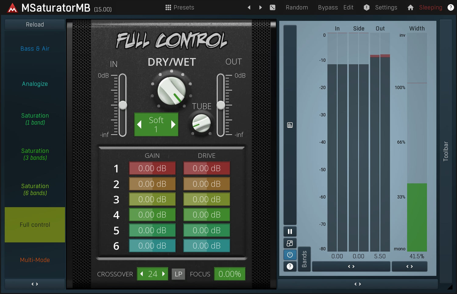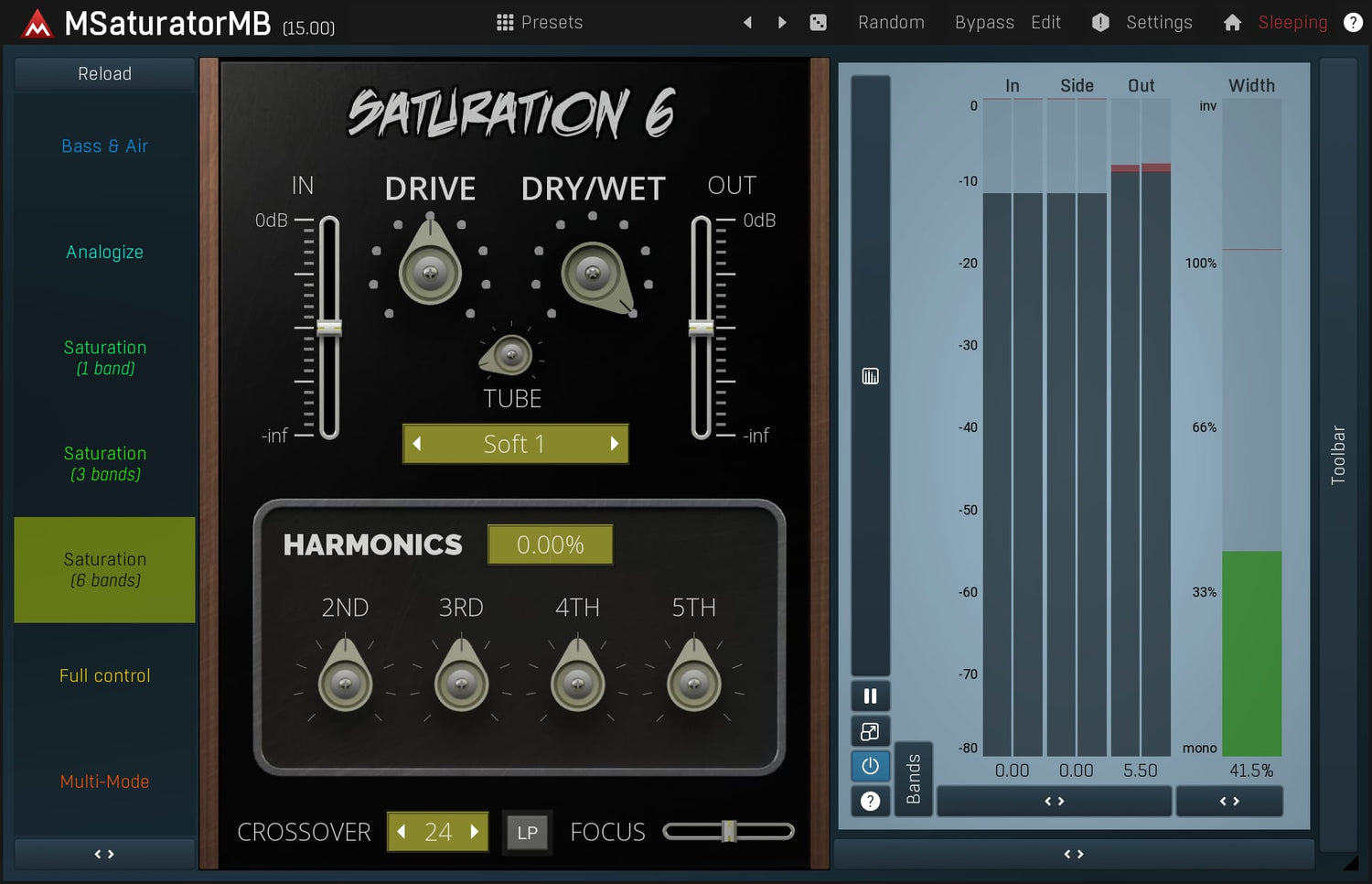 Saturation är en mycket speciell typ av mjuk distorsion känd från rör och band. Den kan ge en harmonisk smak, förbättra bas och sub-bass innehåll och mycket mer. MSaturatorMB är en extremt musikalisk och mångsidig saturation plugin, som också innehåller en digital harmonisk generator. MSaturatorMB kombinerar det bästa från både den analoga och digitala världen.