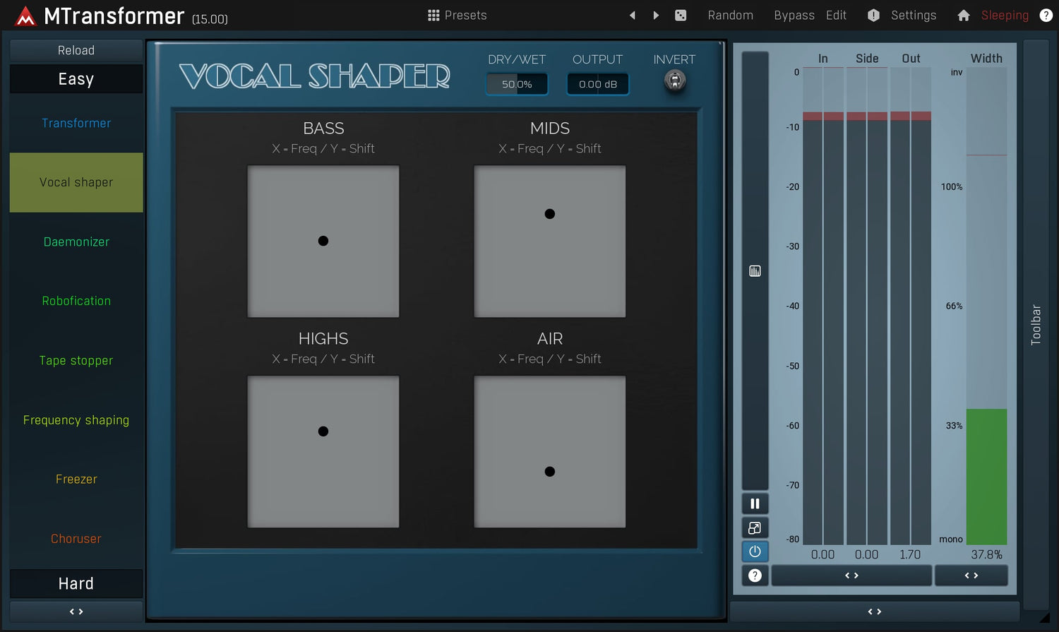 Pitch shifting, frequency shifting, daemonic och robotiska röster... det är MTransformer, en unik spektralprocessor som låter dig transformera vilken frekvens som helst till en annan, transformera deras nivåer.