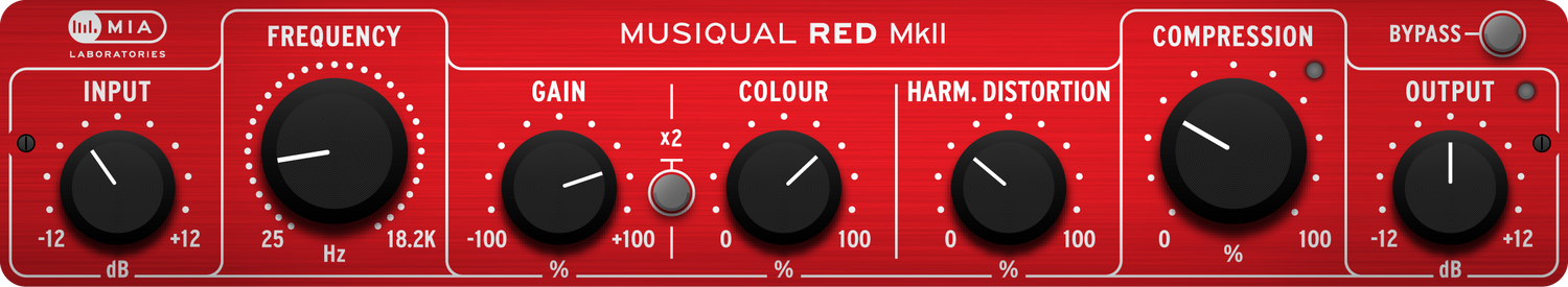 Harmonisk distorsionskomponenten av Musiqual Red är designad för att simulera responsen som rörkretsar uppvisar när de används "hett". Den introducerar främst 2:a och 3:e ordningens harmoniker, tillsammans med några 4:e ordningens harmoniker och den möjliggör enkel kontroll över mängden distorsion som läggs till signalen.