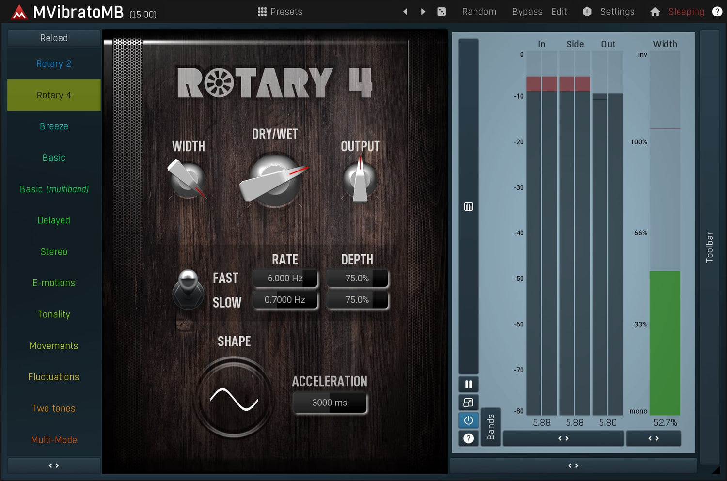 Vibrato-effekter används sällan, men denna är annorlunda. MMultiBandVibrato är också en kraftfull rotary-simulator, som är perfekt för allt från orglar till gitarrer. Och ljudkvaliteten är helt enkelt den bästa på marknaden.