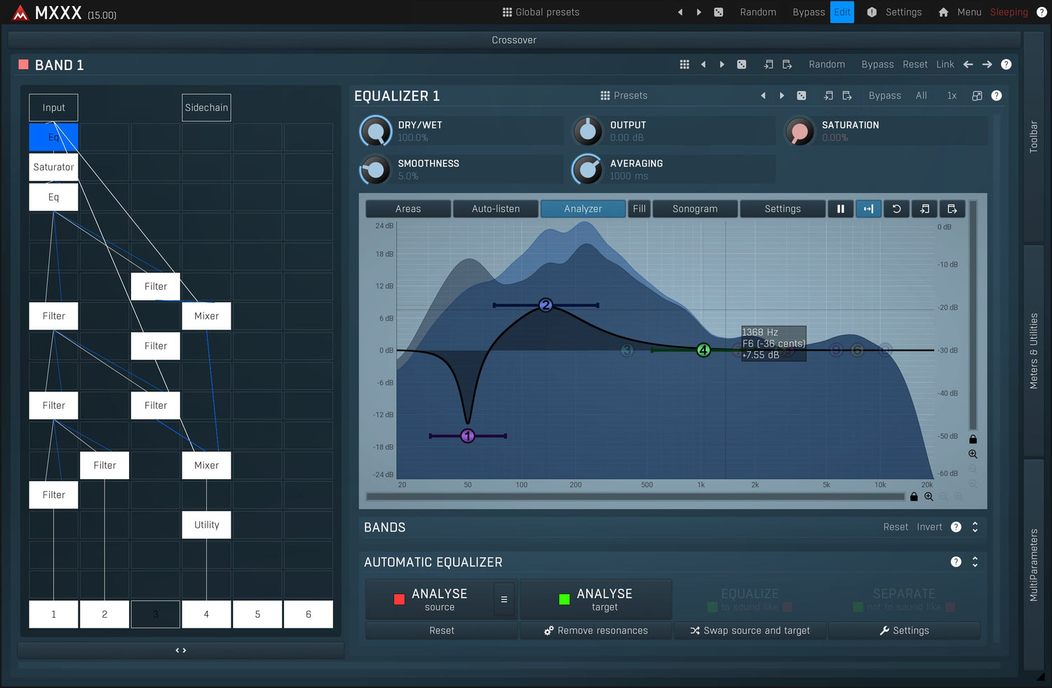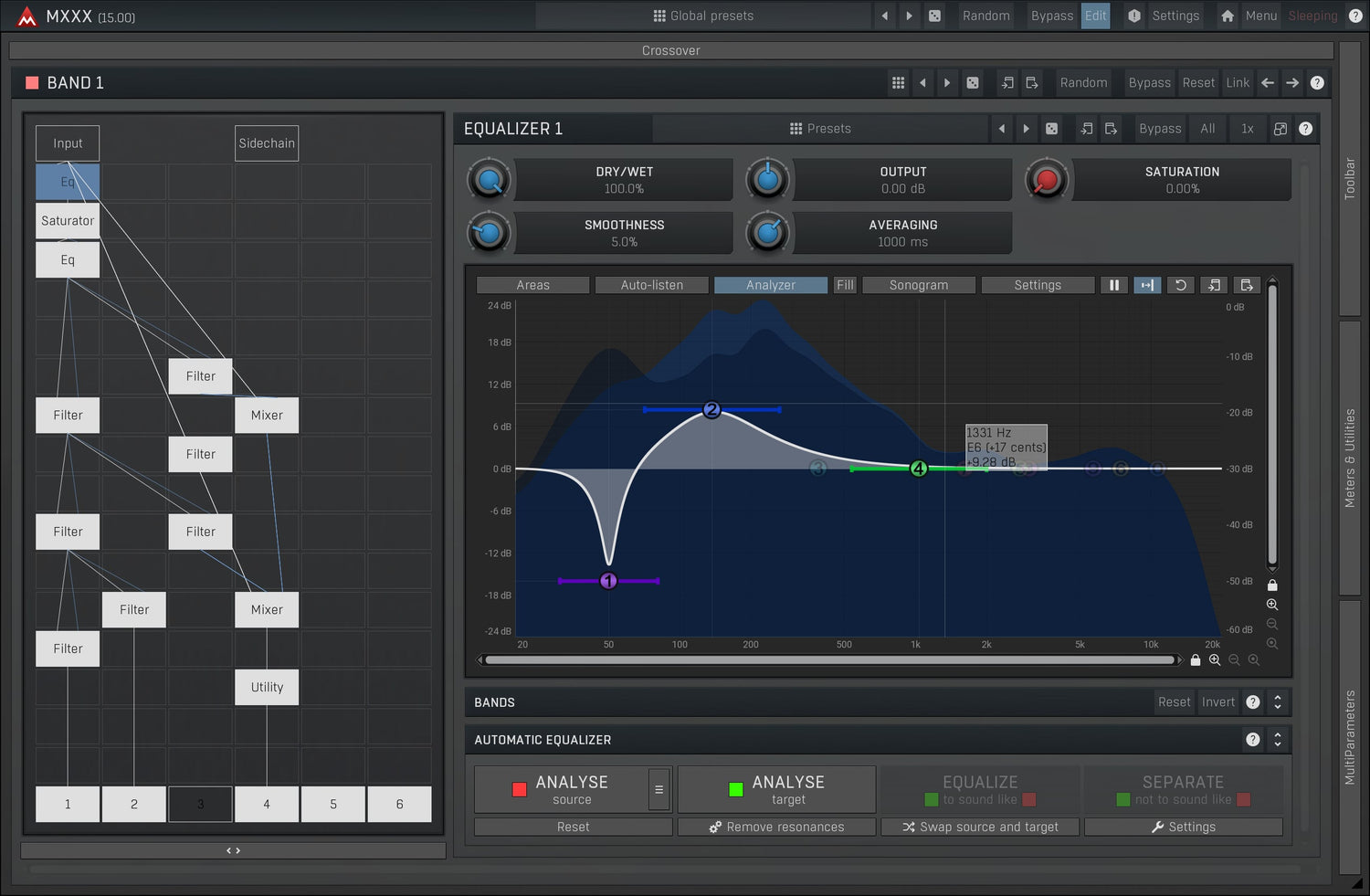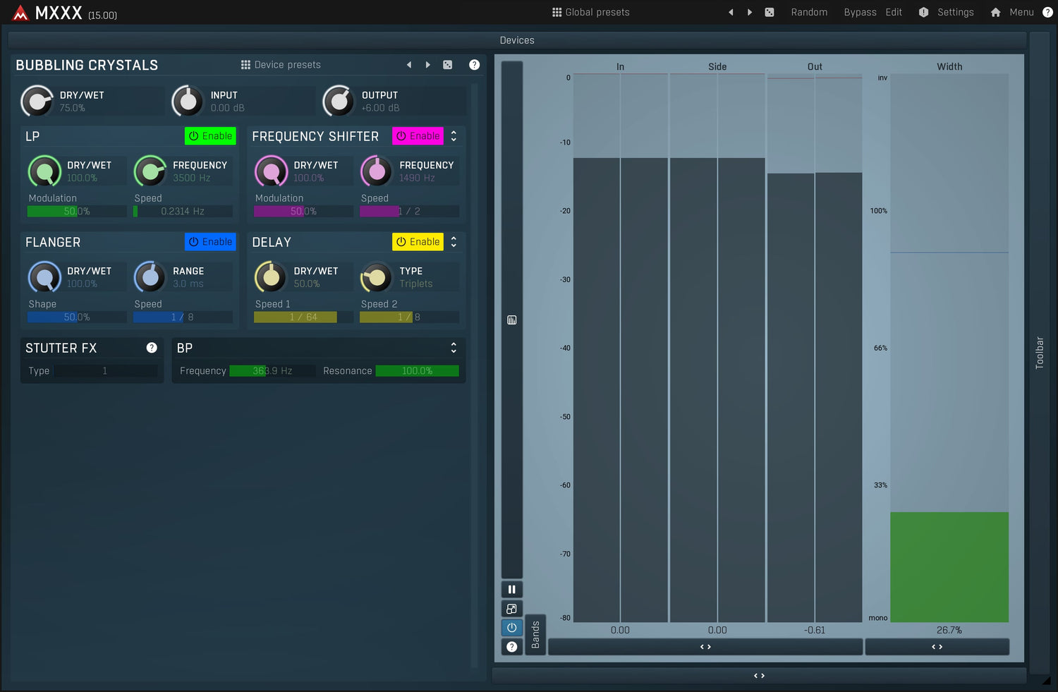 MXXX är den ultimata effekten. Det är ett modulärt monster som innehåller alla våra effekter i ett enkelt interface med en automatisk routingmatrix, supermångsidiga modulatorer och mycket mer. Det låter dig göra allt från enkel equalization och kompression till de vildaste och mest kreativa bearbetningar.