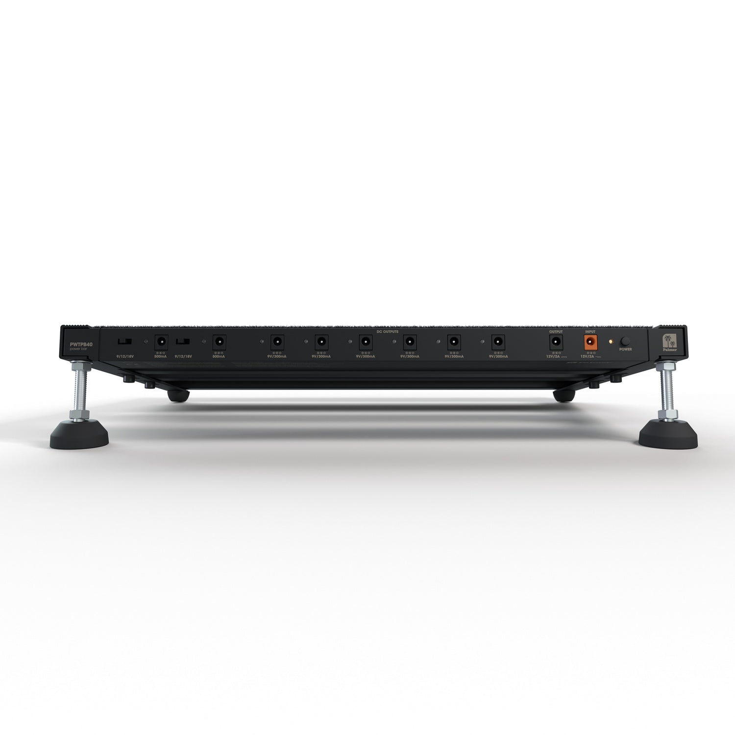 PEDALBAY® 40 PB-setet kombinerar Palmer PEDALBAY® 40 och Palmer WT PB 40-strömförsörjningen med 8 individuellt isolerade utgångar. Tack vare den patenterade integreringen kan strömförsörjningen bytas ut och fästas med den bakre skenan på PEDALBAY® 40. Separat transport av strömförsörjningen och PEDALBAY® är inte längre nödvändig.