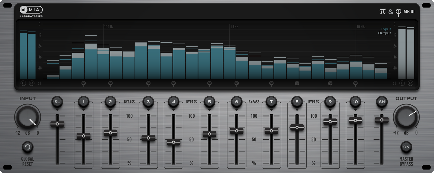 Pi & Phi MkIII har 10 band som täcker frekvenser från 80 Hz upp till 16 kHz, tillsammans med ett “Super Low” och ett “Super High” band för att täcka spektrumets extremiteter.