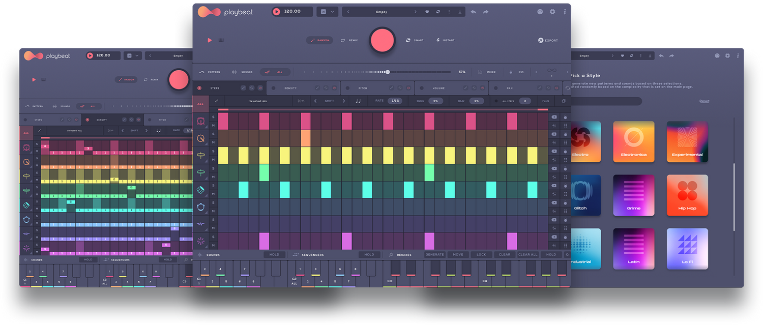 Playbeat 4 har nya, banbrytande algoritmer och revolutionerande genrebaserad mönstergenerering, vilket möjliggör oändliga nya mönster, ljud och grooves.