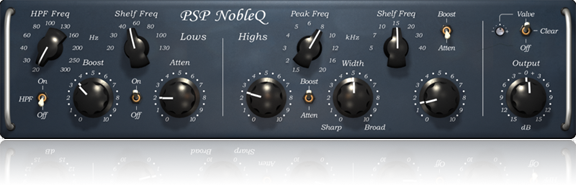 PSP NobleQ kombinerar funktionerna hos passiva program equalizers med ett brett utbud av frekvensinställningar och utökad funktionalitet. För att göra denna plug-in till ett mångsidigt verktyg har vi lagt till flera moderna funktioner såsom ett justerbart högpassfilter och möjligheten att växla mellan hög peak- och hyllfilter i "Boost" eller "Attenuation" lägen.
