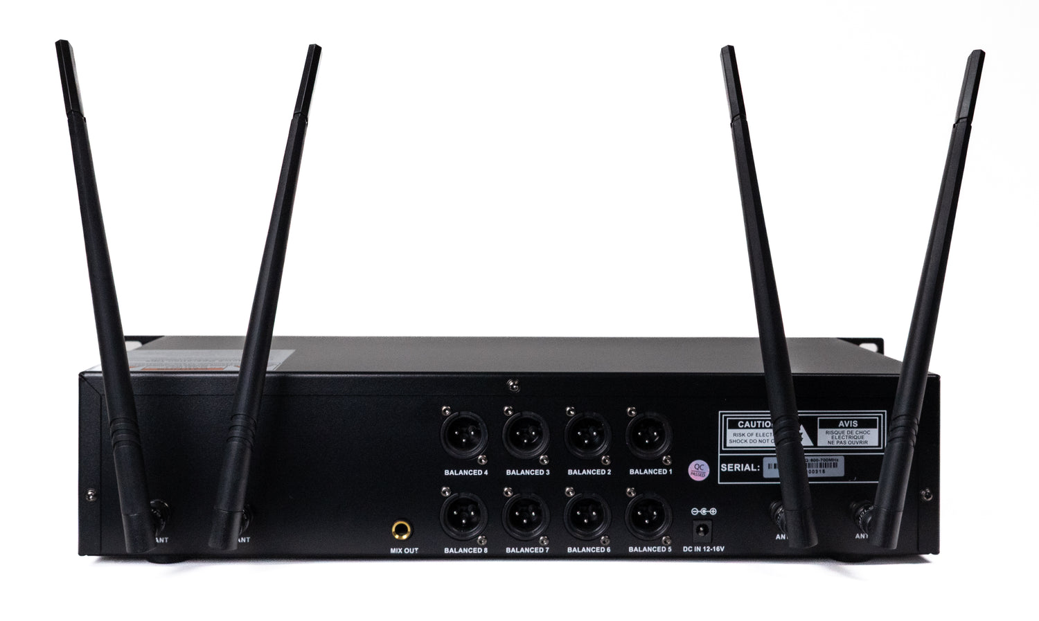 - Består av 8 bordmikrofontransmittrar och en enda mottagare