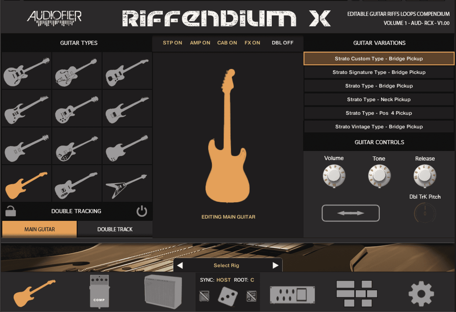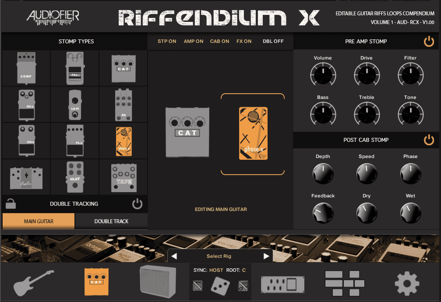 Utforska den twangiga bettet av en Telecaster, den mjuka rikheten av en Jazzmaster, eller det ikoniska vrålet av en Les Paul. Riffendium X har ett arsenal av 12 pre-amp och post-amp stomp-effekter för att ytterligare forma ditt ljud.