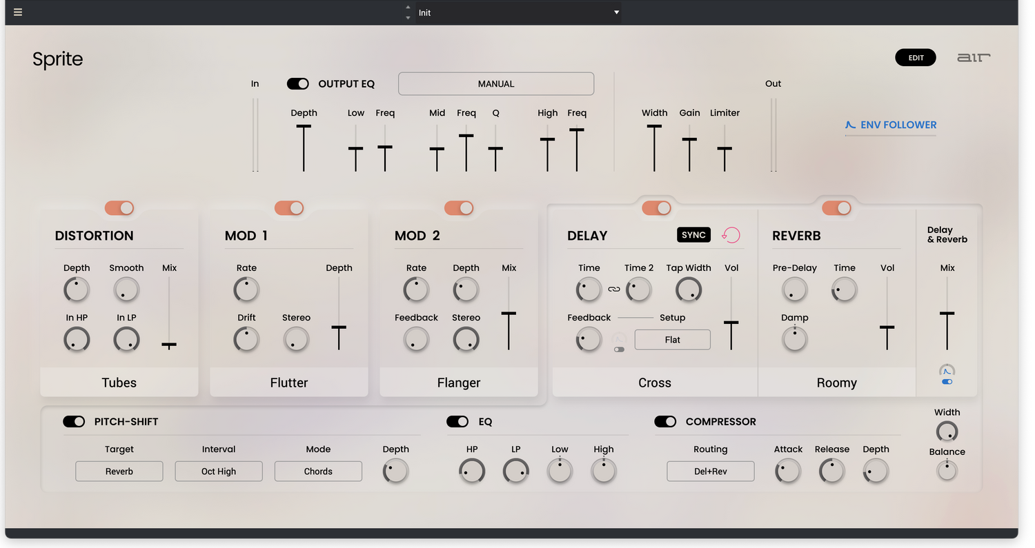 Air Sprite, en modern tolkning av studiohårdvarans grundpelare från 80- och 90-talet, multi-effects processor. Sprite gör saker som inte är möjliga i en hårdvaruenhet.