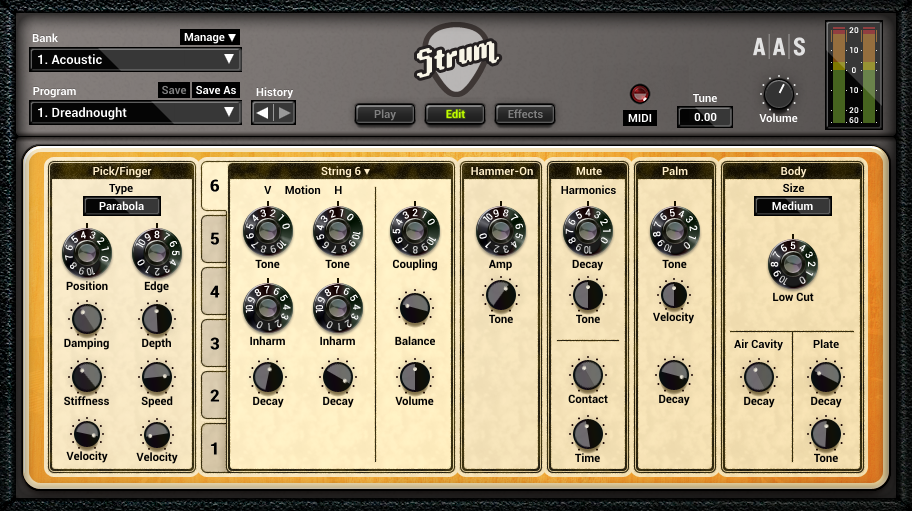 Strum GS-2 är en plug-in för produktion av gitarrspår. Med en imponerande samling av akustiska och elektriska gitarrer, automatisk ackordigenkänning, sofistikerad ackordvoicing, integrerad strumming och picking, MIDI riff-bibliotek, förstärkare och effekter har det aldrig varit så enkelt att spela gitarr på ett tangentbord.