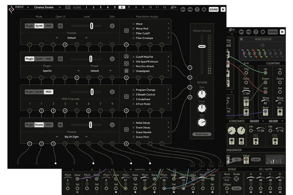 Nest är ett superflexibelt kompositionsverktyg, som sammanför klassisk transistorlogik med moderna datorfunktioner. Wire-patchningen erbjuder oändliga möjligheter och överraskningar. Med 12 patchscener och ett kraftfullt ljudinterface är Nest ett litet laboratorium för komplexa, intelligenta musikmaskiner.