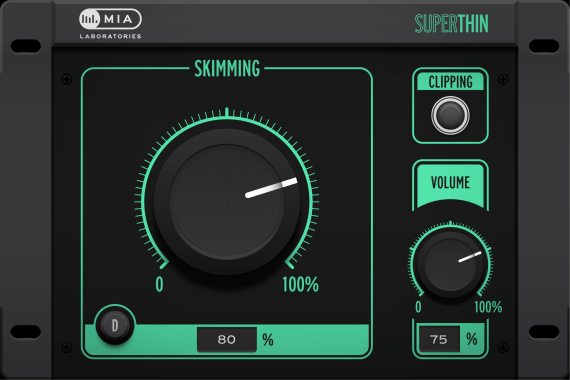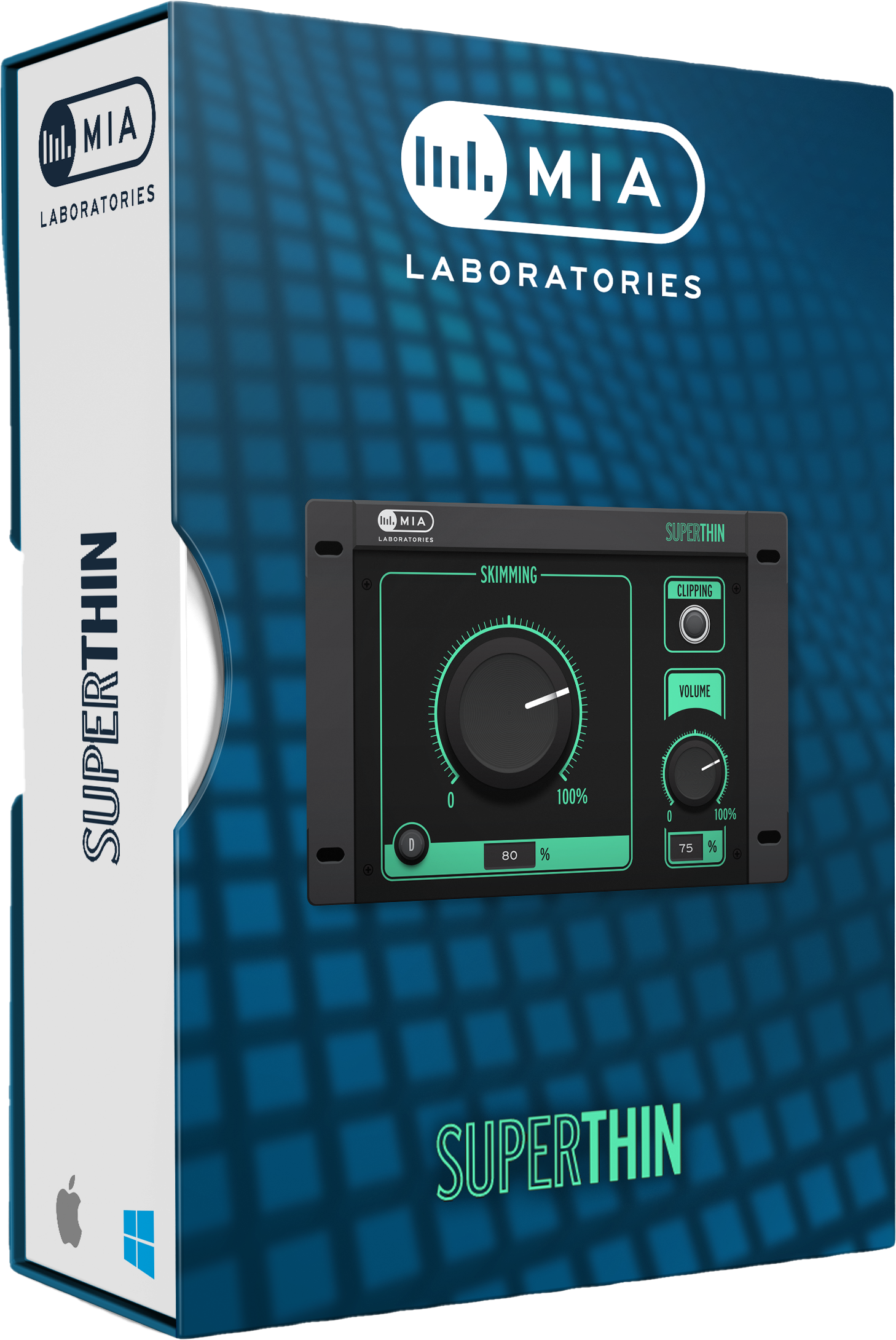 SUPER THIN är en One-Knob stil plug-in som resulterar i en kombination av Mia Labs Musiqual Red, Musiqual Blue, Musiqual Green plug-ins och en sista touch av Pi & Phi-magi.