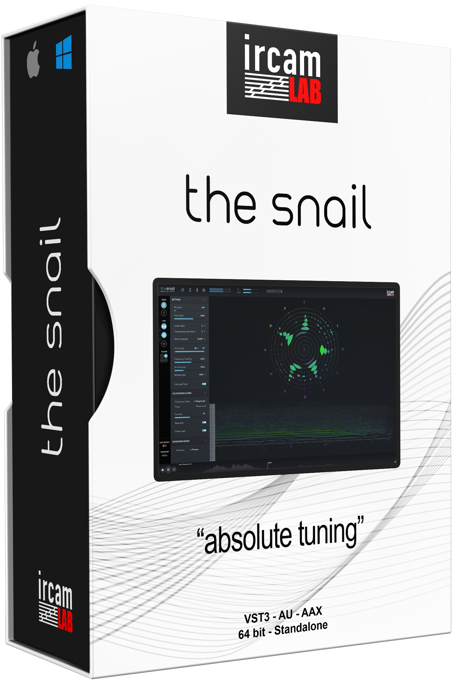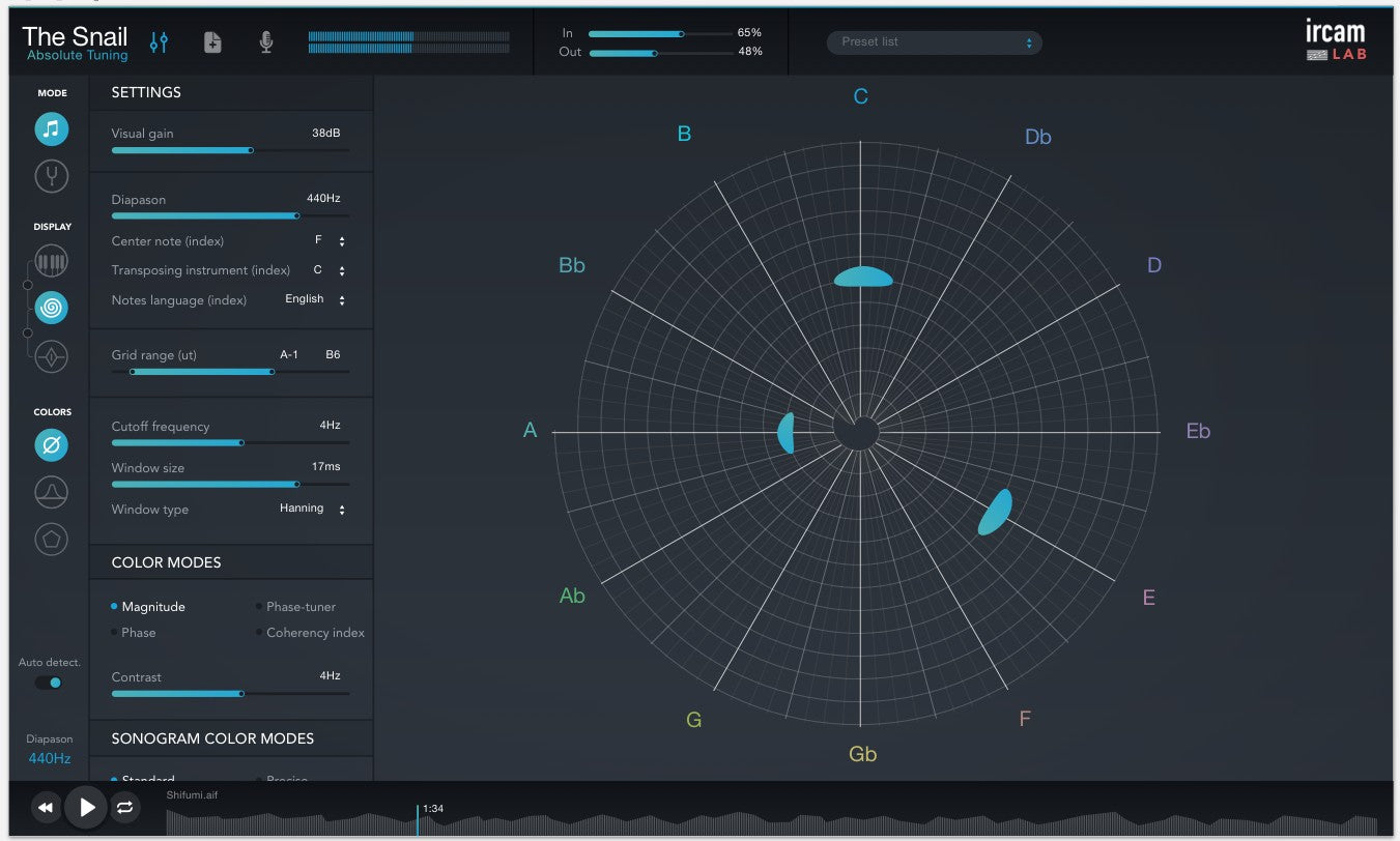 Snail är en mycket högprecisions frekvensdomänanalysator som levererar en intuitiv representation av ljud baserat på skalor och noter som är anpassade i spektralt aktiva zoner.