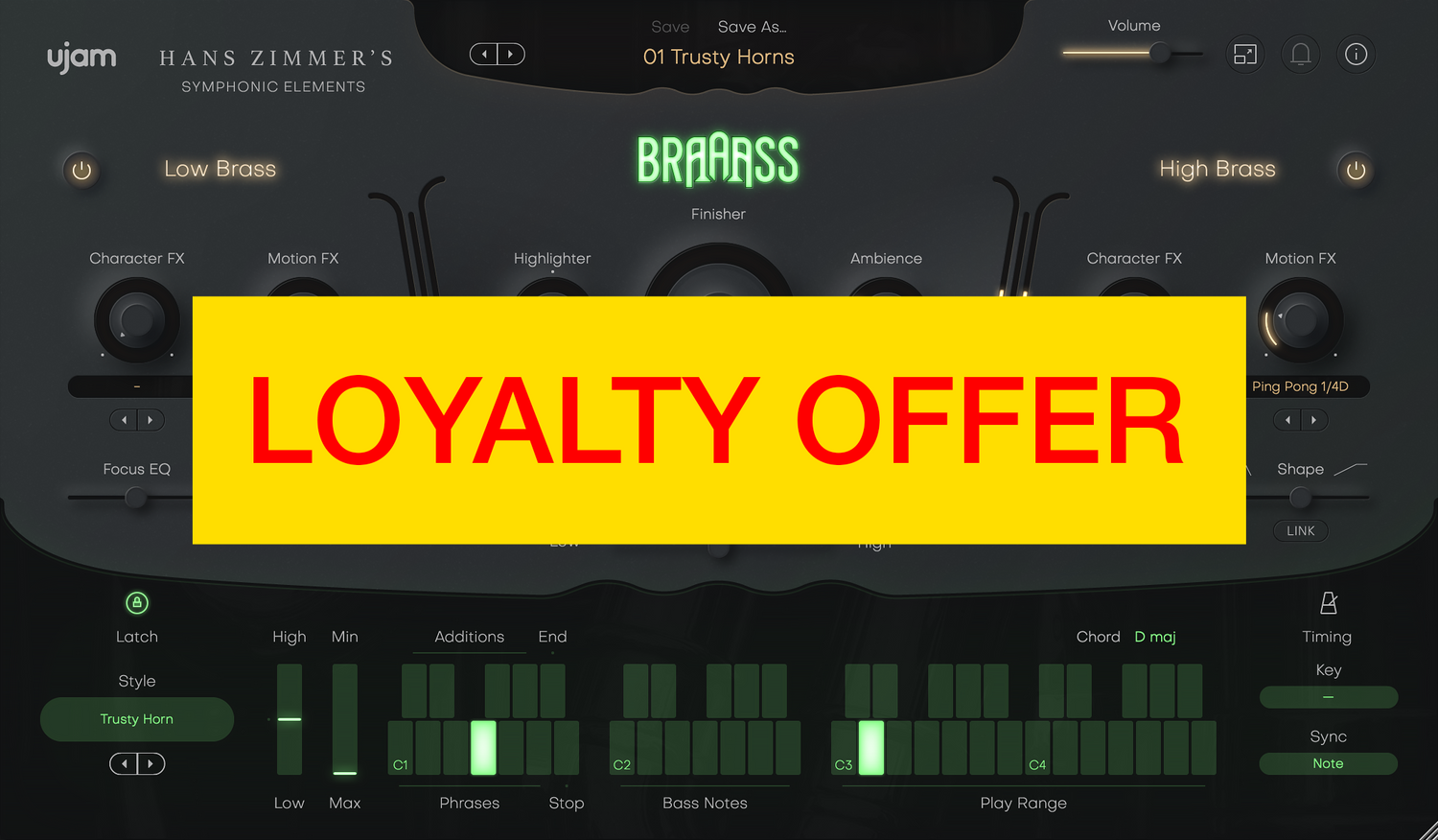 - Crossfade Slider: Effortlessly blend low and high brass for smooth transitions or dynamic contrasts.