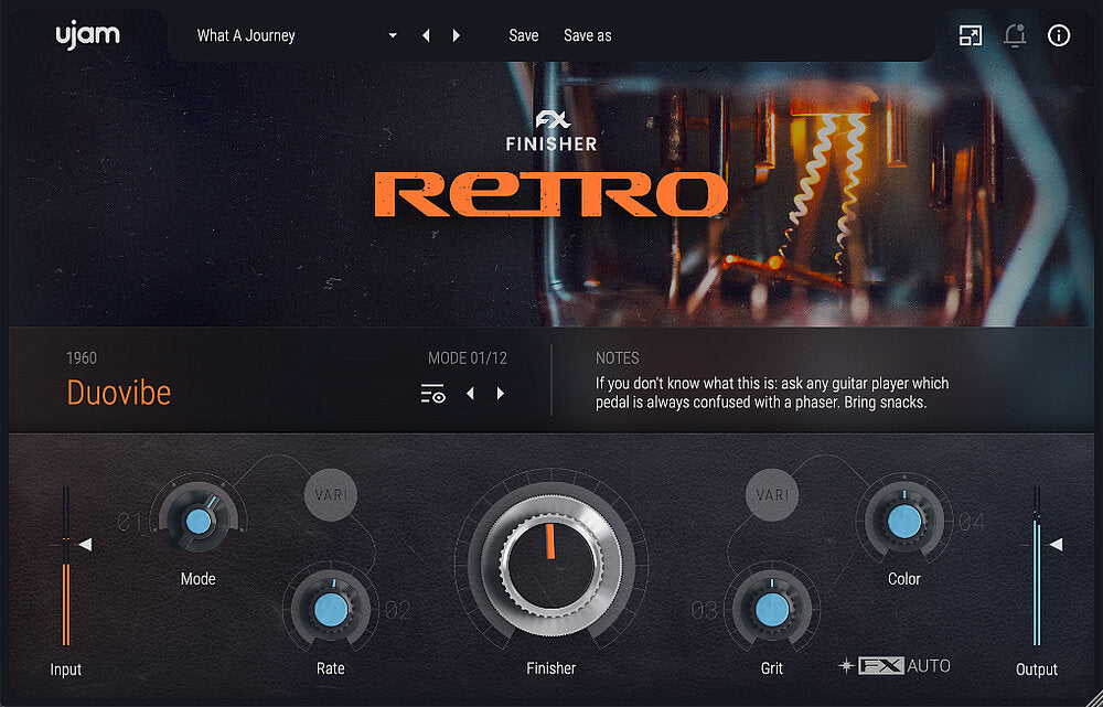 Finisher är en helt ny typ av audioeffektplugin från UJAM. Den är utformad för att kombinera kraften hos en hel effektbänk med användarvänligheten och den omedelbara tillfredsställelsen hos en enda vokal- eller gitareffektplugin. Finisher är din musikaliska följeslagare som kommer att fortsätta inspirera dig och skydda dig från att spela in eller mixa en tråkig och intetsägande låt igen.