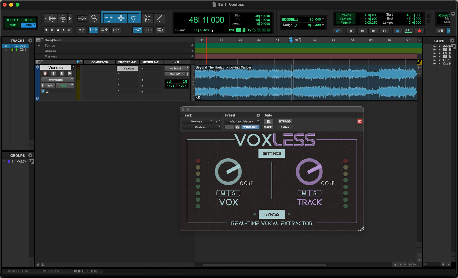 Kompatibel med alla större DAWs, inklusive ProTools, Logic Pro X och Cubase, är VOXLESS idealisk för DJs, mash-up entusiaster, samt mix- och mastringsingenjörer som vill justera en mix utan att behöva de ursprungliga stammarna.
