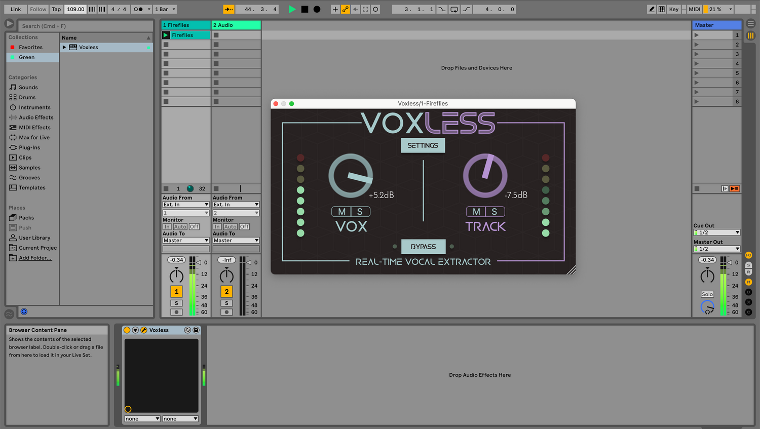 VOXLESS är ett kraftfullt verktyg som fungerar som en mycket effektiv vokalborttagare, vilket gör att du enkelt kan ta bort vokaler från en låt i din DAW.